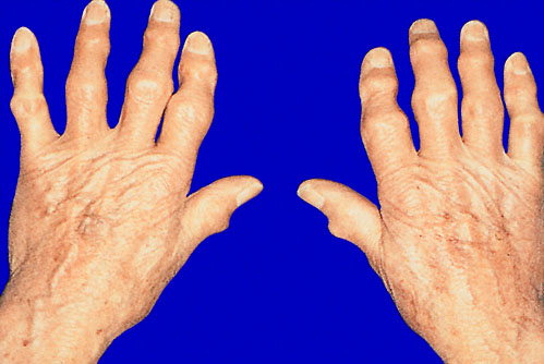 An 81-year-old woman comes to the clinic because of a 1-year history of increasingly severe pain in her fingers. She says that she now has difficulty grasping objects. She has no other bone or joint pain. Medical history is remarkable for atrial fibrillation, hypertension, and right-sided breast cancer treated with mastectomy 7 years ago. Current medications are diltiazem, hydrochlorothiazide, tamoxifen, and warfarin. BMI is 16 kg/m2. Temperature is 36.8°C (98.2°F), pulse is 75/min, respirations are 14/min, and blood pressure is 115/84 mm Hg. Pulse oximetry on room air shows an oxygen saturation of 97%. Physical examination discloses the findings shown in the photograph. The hands are mildly tender to palpation at the proximal interphalangeal (PIP) joints; there is pain with movement at these joints. X-rays of the hands show narrowing of the PIP joint spaces; presence of osteophytes; and subchondral cysts affecting the distal interphalangeal joints. Which of the following is the most likely underlying cause of the joint findings in this patient?