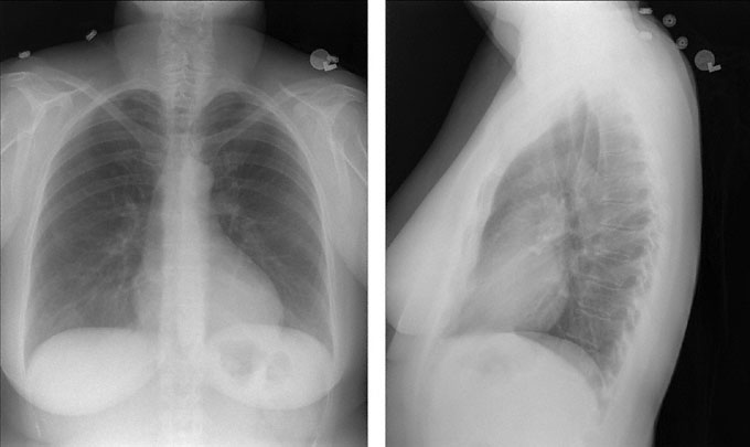 A 27-year-old woman with a 9-year history of systemic lupus erythematosus comes to the emergency department because of sharp, left-sided chest pain and mild shortness of breath that began yesterday. The patient also reports mild pain in her left calf for the past 2 days. She reports no recent trauma and has not had cough, fever, or chills. Medical history is otherwise unremarkable and she takes no medications. Vital signs are temperature 37.1°C (98.8°F), pulse 108/min, respirations 20/min, and blood pressure 126/72 mm Hg. Pulse oximetry on room air shows an oxygen saturation of 95%. Auscultation of the chest discloses no abnormalities. There is mild tenderness to palpation over the left calf, which is 2 cm larger in circumference than the right calf. The remainder of the physical examination discloses no abnormalities. Chest x-rays are shown. Which of the following is the most appropriate next step in diagnosis?